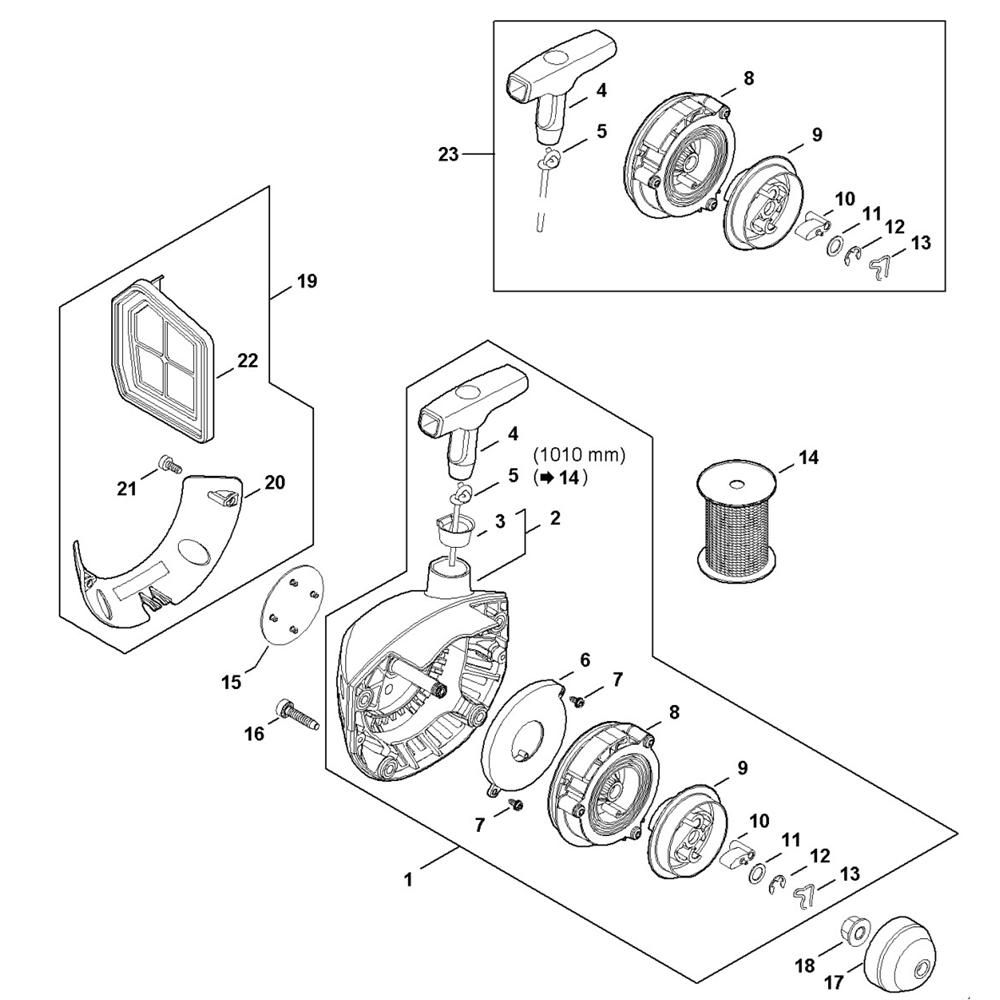 The Rewind Starter Assembly for the Stihl FS461 C-EML Clearing Saw is designed to ensure reliable starting performance. This assembly includes components such as the starter rope, pulley, and spring, which work together to engage the engine smoothly. Essential for maintaining the efficiency and longevity of your clearing saw, these parts are genuine Stihl replacements.