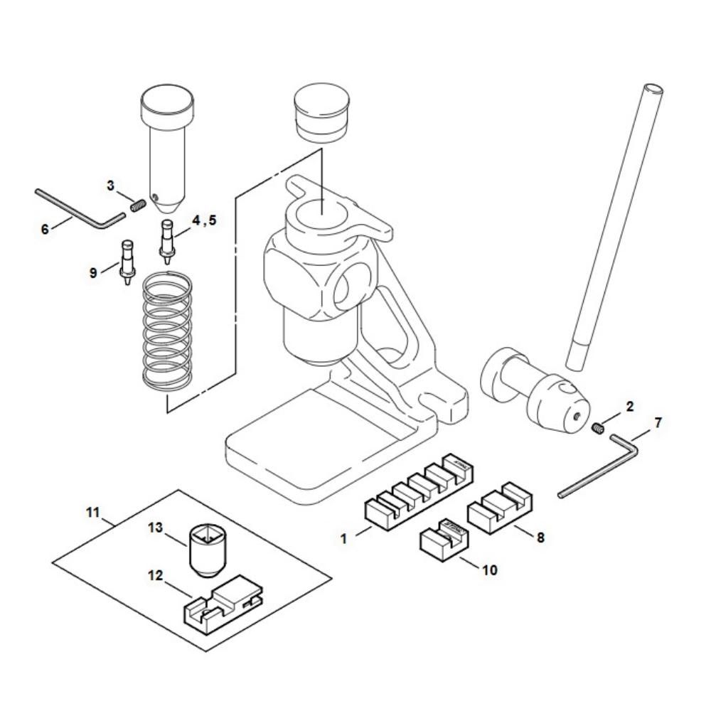 The Rivet Breaker Extras Assembly for Stihl NG 4 Rivet Spinners includes essential components to enhance the functionality and longevity of your rivet spinner. This genuine Stihl part is designed to ensure optimal performance, featuring components such as springs, levers, and fasteners. Ideal for maintaining and repairing your equipment, it helps in achieving precise and efficient rivet breaking.