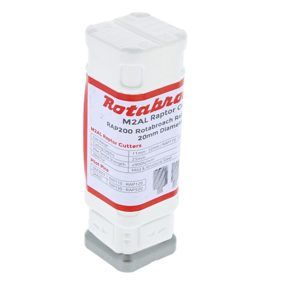 The Rotabroach™ HSS Raptor Cutter 20 x 25mm is a high-speed steel cutting tool designed for precision drilling in metalworking applications. With a diameter of 20mm and a cutting depth of 25mm, this cutter is ideal for creating clean, accurate holes in various metals. Its robust construction ensures durability and long-lasting performance, making it suitable for use with magnetic drills and other compatible machinery. This cutter is perfect for tradespeople and DIY enthusiasts looking for reliable and efficient cutting solutions.