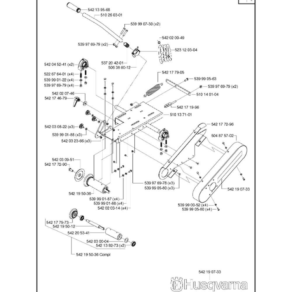 The Saw Head Assembly 2 for the Husqvarna MS 355 G Masonry Saw includes essential components to ensure optimal cutting performance. Designed for precision and durability, this assembly helps maintain the saw's efficiency and longevity. Components typically include blades, guards, and tensioning systems, all crafted to meet Husqvarna's high standards.