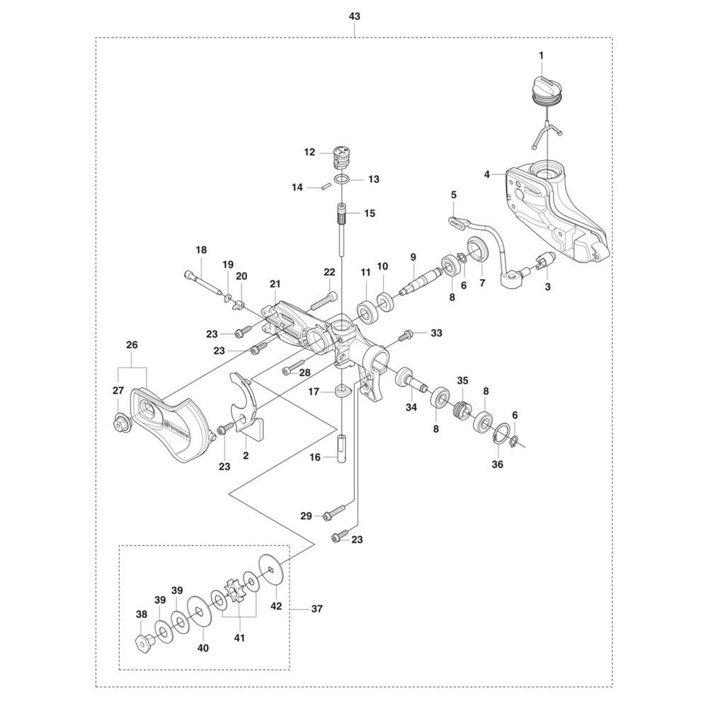 The Saw Head Assembly for Husqvarna 330iKP Pole Pruners includes essential components to ensure efficient cutting performance. Designed for the Husqvarna electric pole pruner, this assembly helps maintain optimal operation by providing reliable parts such as chains, sprockets, and guards. Regular maintenance with genuine Husqvarna parts can extend the lifespan of your equipment.