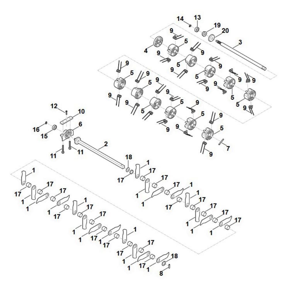 The Scarifying Unit Aerator Roller Assembly for Viking LE 240 Lawn Scarifiers is designed to enhance lawn health by removing moss and thatch. This genuine Viking part ensures optimal performance and longevity. The assembly includes components such as rollers and blades, which work together to aerate the soil, promoting better water and nutrient absorption.