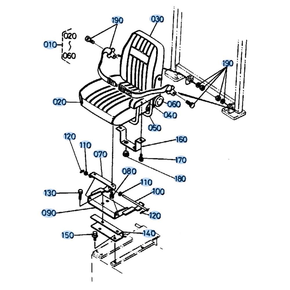 The Seat Assembly for the Kubota KH41 Mini Excavator is designed to provide comfort and support during operation. This genuine Kubota part ensures a perfect fit and reliable performance. The assembly includes components such as cushions, frames, and adjustment levers, enhancing operator comfort and machine usability.
