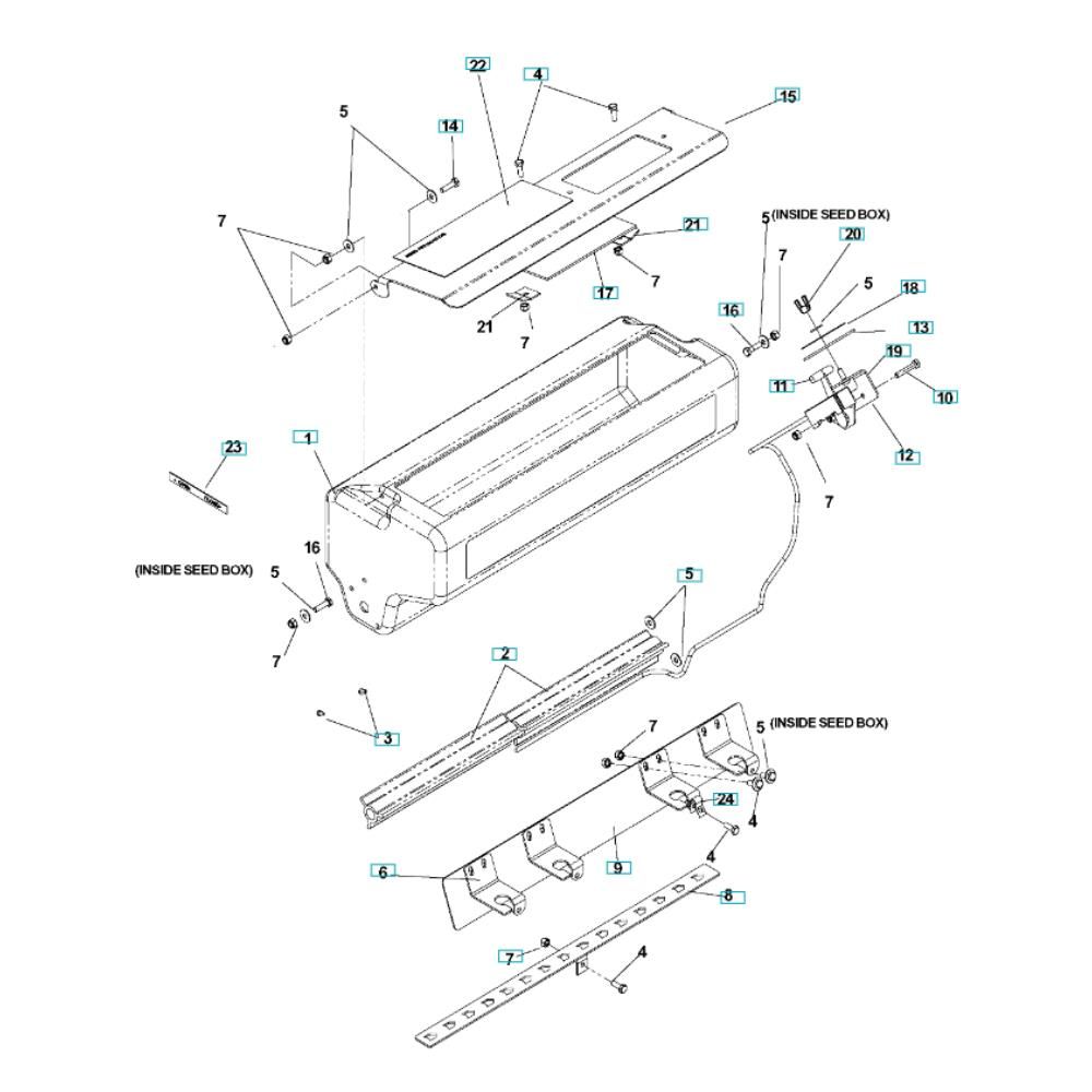The Seeder Assembly for the Husqvarna DT22H5NRA Dethatcher is designed to enhance the machine's performance by ensuring efficient seed distribution. This assembly includes essential components such as seed tubes, distribution plates, and adjustment levers, which work together to optimise the dethatching process. Genuine Husqvarna parts ensure compatibility and durability.