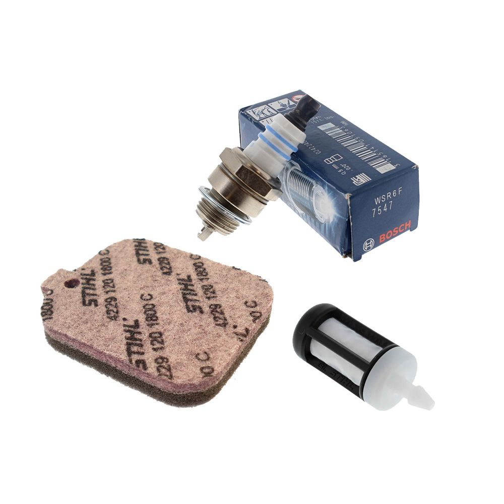- Includes fuel pick-up filter, air filter element, and spark plug for a complete routine service