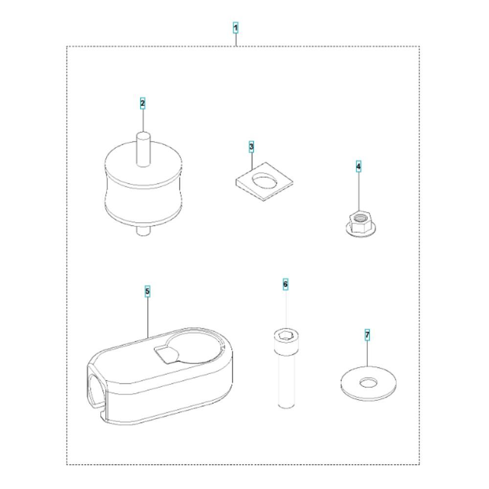The Shock Absorber Assembly for the Husqvarna LF 130 LT Petrol Compactor is designed to enhance machine stability and performance. It helps reduce vibrations and ensures smooth operation during compaction tasks. This assembly includes components such as springs, dampers, and mounts, all essential for maintaining the compactor's efficiency and longevity.