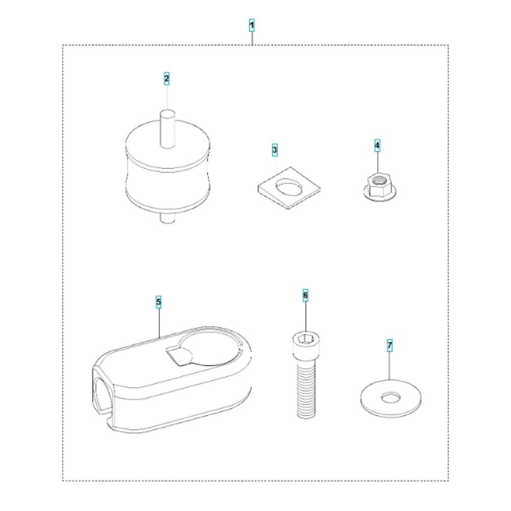 The Shock Absorber Assembly for the Husqvarna LF 75 L Compactor is designed to enhance the machine's performance by reducing vibrations and ensuring smooth operation. This assembly includes components such as springs, dampers, and mounting brackets, all essential for maintaining the compactor's efficiency and longevity. Genuine Husqvarna parts ensure compatibility and reliability.