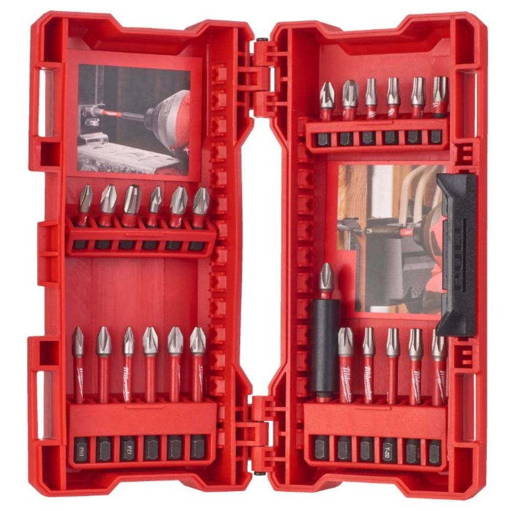 Milwaukee Impact Duty Screwdriving Set (25pc), 25-piece driver bit kit, impact driver bit assortment with magnetic holder, heavy-duty screwdriver bit set, 1/4 in hex screwdriver bits (6.35 mm), professional impact-rated bit kit.