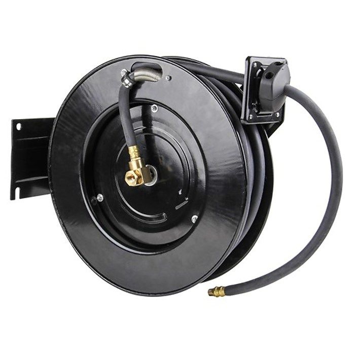 The Super Major Hose Reel R15 boasts heavy-duty PVC hose in a tough metal reel and a through flow function - allowing air to pass through, meaning it can be (un)wound during operation.