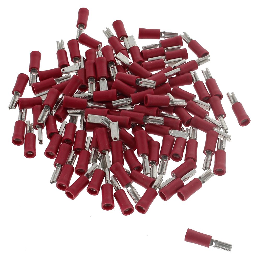 | Key Features | - Fits standard 2.8mm male tabs for secure connections - Red insulated sleeve aids circuit identification - Durable metal contact for repeated use - Compatible with hand and ratchet crimp tools - Pack of 100 for multiple repairs and builds |