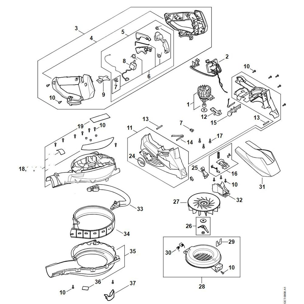 Spare parts for the Stihl SHA 56 Cordless Shredder Vacuum ensure optimal performance and longevity. These genuine Stihl components include essential items such as filters, blades, and fasteners, designed to maintain the efficiency and reliability of your shredder vacuum. Regular replacement of these parts helps in reducing wear and tear, ensuring smooth operation.