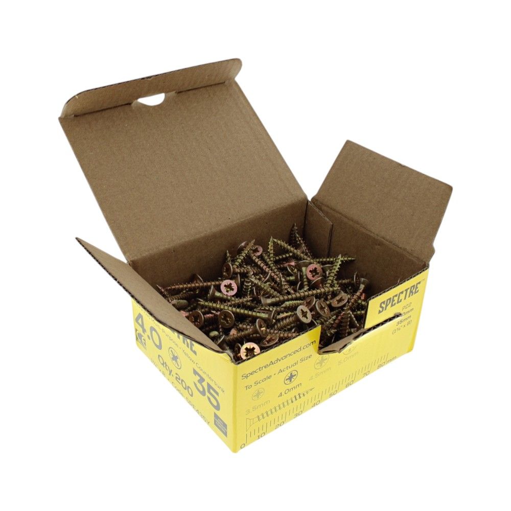 The Spectre Screw PZ Compatible CSK ZYP 4.0 x 35mm is a versatile and reliable wood screw designed for a wide range of construction and DIY applications. Manufactured by ForgeFix, these screws feature a fully threaded design with a double countersunk head and a pozi compatible recess, ensuring a secure fit and easy installation. The sawtooth thread design helps prevent wood splitting, while the reamer feature reduces the risk of jacking. Made from high-quality materials, these screws have a zinc yellow passivated finish, providing excellent corrosion resistance and an attractive appearance. Perfect for tradespeople and DIY enthusiasts alike, these screws are an essential addition to any toolkit.