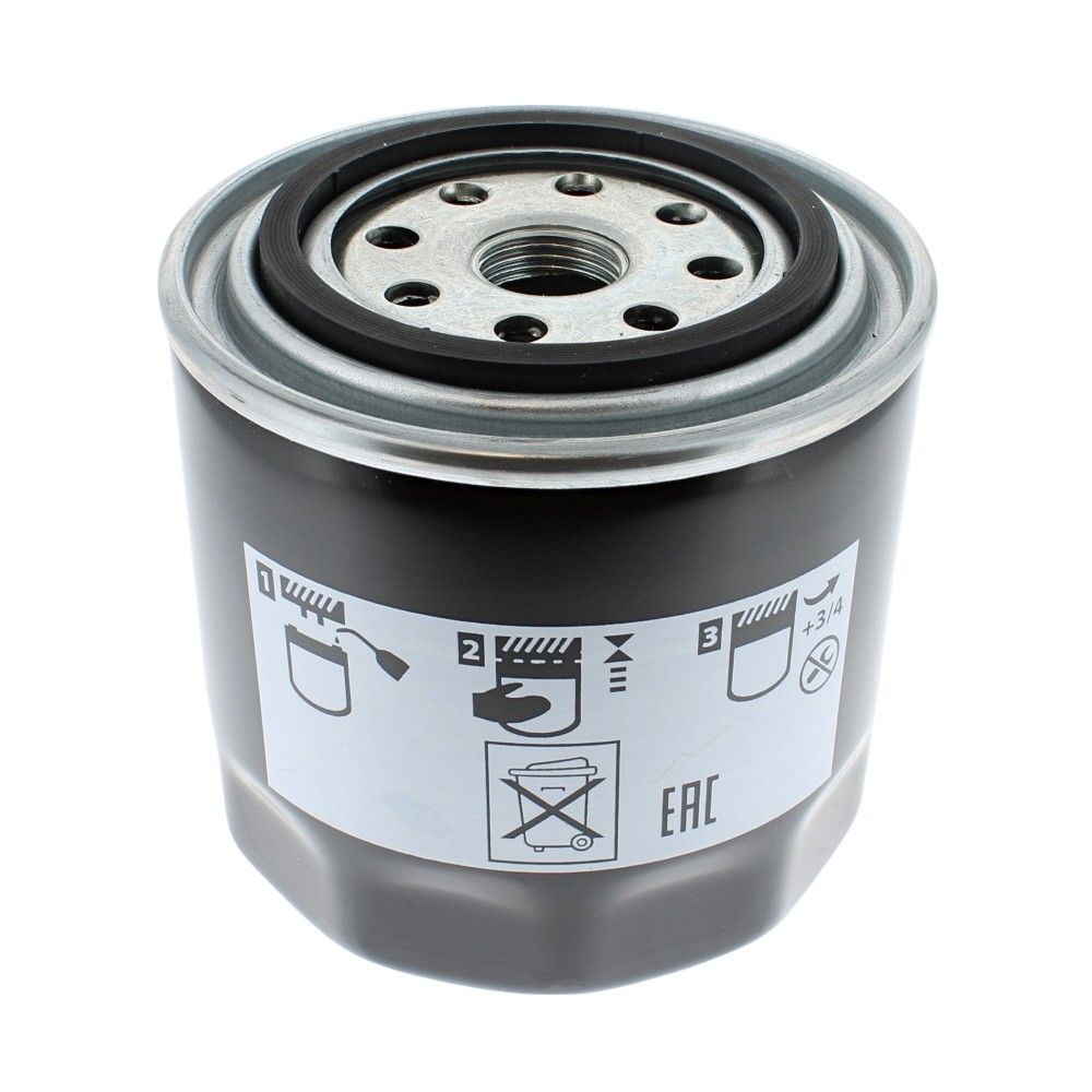 Spin-on engine oil filter, lube oil filter, oil filter cartridge, replacement oil canister, service oil filter element, screw-on oil filter.