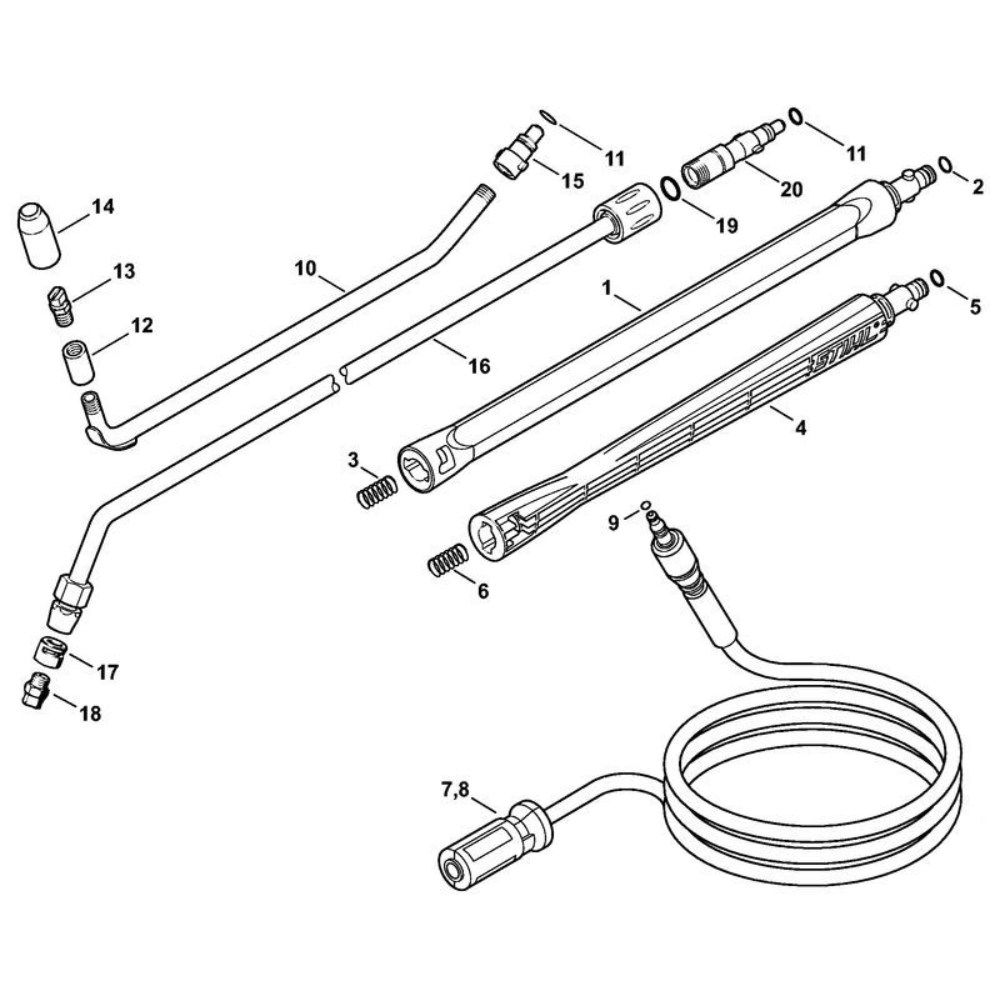 The Spray Lance Assembly for the Stihl RE 119 Pressure Washer is designed to enhance cleaning efficiency and performance. This assembly includes essential components such as nozzles and connectors, ensuring optimal water flow and pressure control. Suitable for various cleaning tasks, it helps maintain the pressure washer's functionality and longevity.