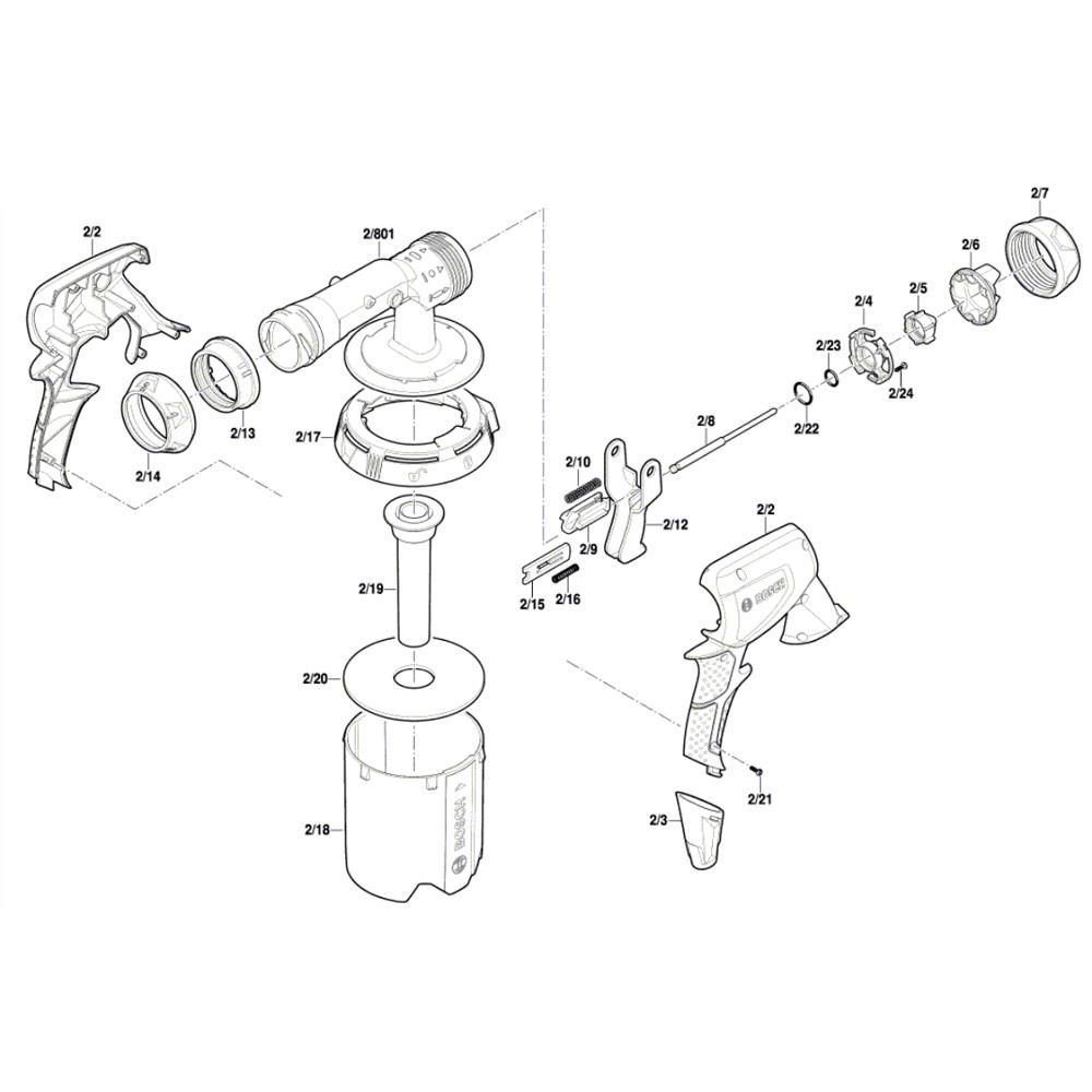 The Spray Pistol Assembly for Bosch PFS 3000-2 is designed to ensure optimal performance and longevity of your paint spraying system. This assembly includes key components that facilitate smooth and efficient paint application, reducing overspray and ensuring even coverage. Genuine Bosch parts guarantee compatibility and reliability for your equipment.