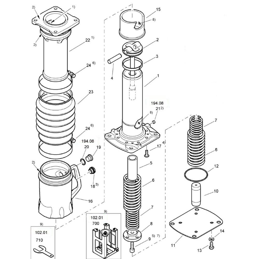 The Spring and Guide Unit Assembly for Bomag BT50 Rammers is essential for maintaining optimal performance and stability. This assembly includes components such as springs and guides, which are crucial for the effective operation of the rammer. Genuine Bomag spare parts ensure compatibility and reliability, helping to extend the service life of your equipment.