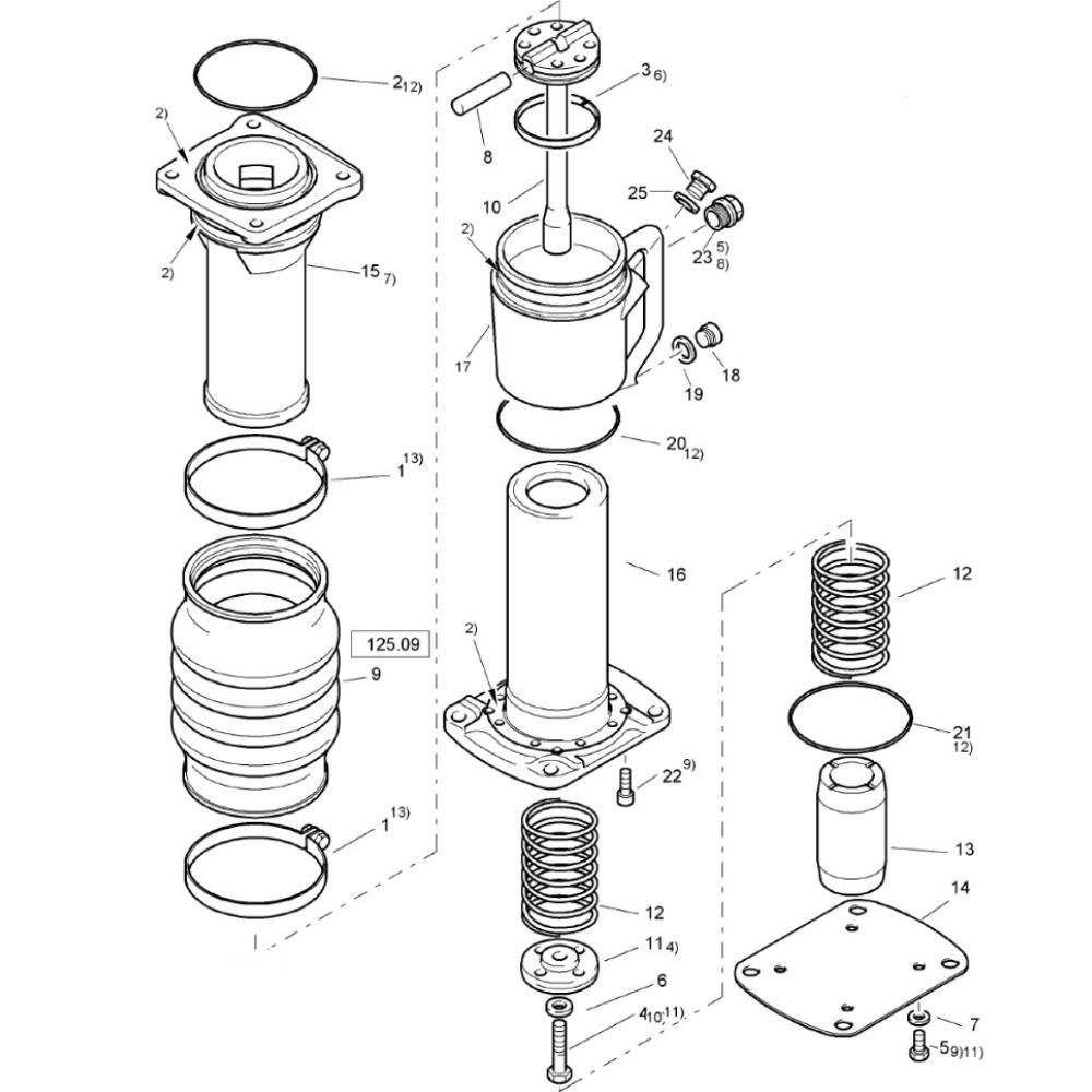 The Spring And Guide Unit for Bomag BT65/4 Rammers ensures optimal performance and longevity. This unit is crucial for absorbing shock and maintaining stability during operation. Genuine Bomag parts are designed for specific serial numbers, ensuring compatibility and reliability. The unit includes components like springs and guides, essential for effective compaction tasks.