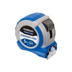This Komelon Stainless Steel PowerBlade Pocket Tape has metric and imperial measurements.