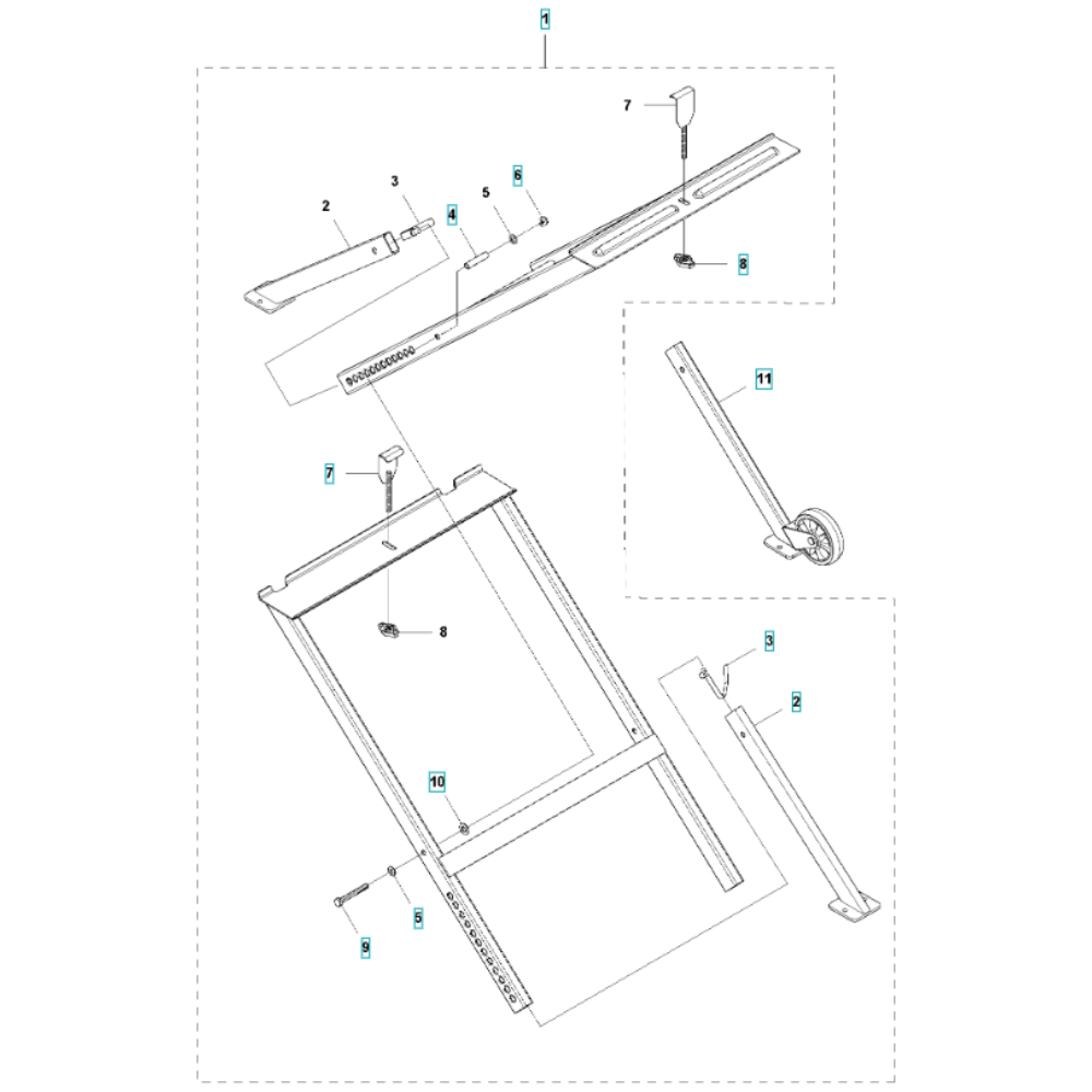 The Stand Assembly for the Husqvarna TS 60 Masonry Saw is designed to provide stable support during cutting operations. This assembly includes essential components that ensure the saw remains secure and level, enhancing cutting precision and safety. Typical parts may include brackets, fasteners, and stabilising elements, all contributing to optimal performance.