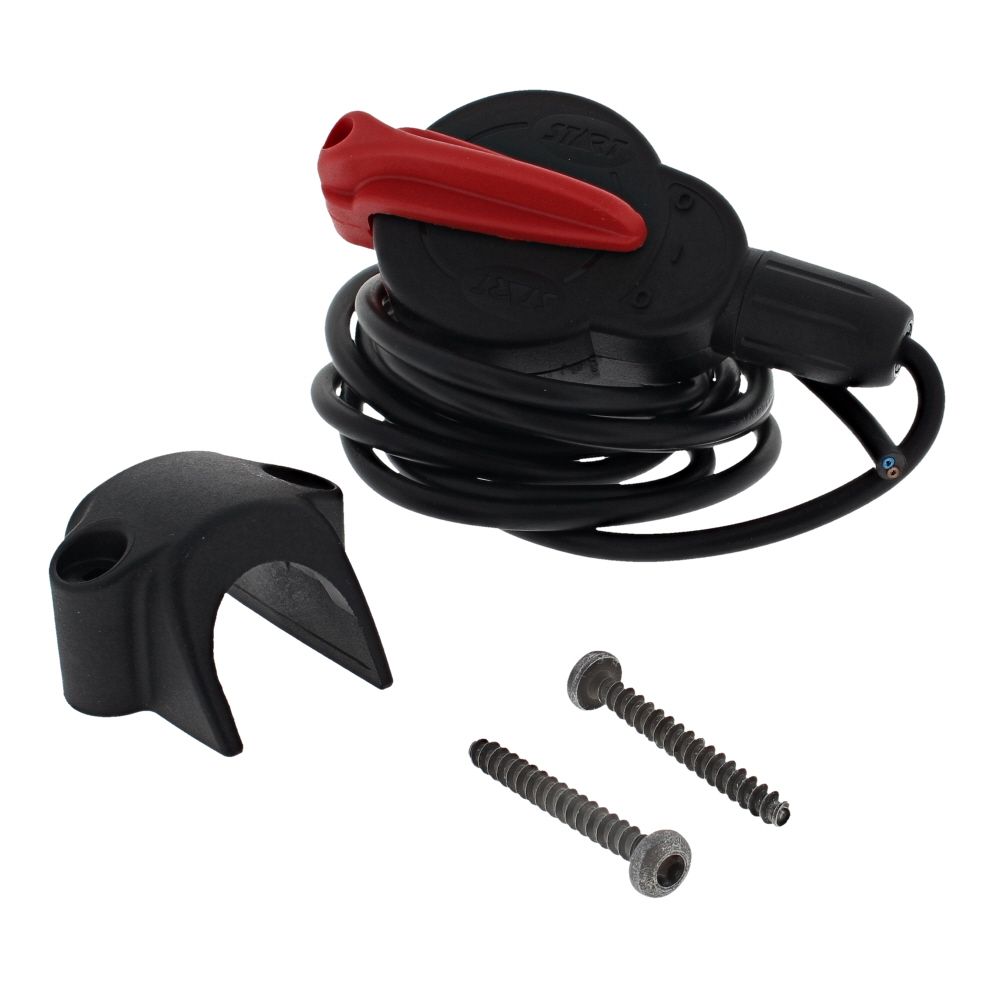 Start/stop switch, on/off switch, ignition switch, engine power switch, engine toggle switch, stop switch, kill switch, rocker switch.
