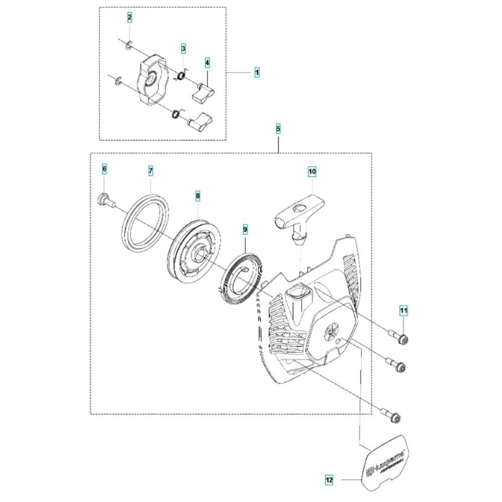 The Starter Assembly for the Husqvarna 525 LST Mark II Brushcutter is essential for reliable engine ignition. It includes components like the recoil spring, starter pulley, and rope, ensuring smooth operation and easy starting. Designed for durability, these genuine Husqvarna parts help maintain optimal performance and extend the lifespan of your brushcutter.