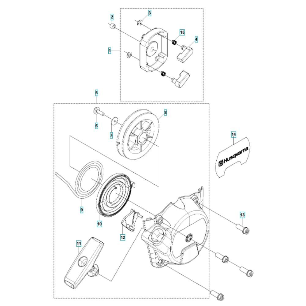 The Starter Assembly for the Husqvarna 541RB Brushcutter is designed to ensure reliable engine ignition and smooth operation. This assembly includes key components such as the recoil spring, starter rope, and pulley, which work together to initiate the engine start process. Genuine Husqvarna parts ensure compatibility and durability, maintaining the brushcutter's performance.