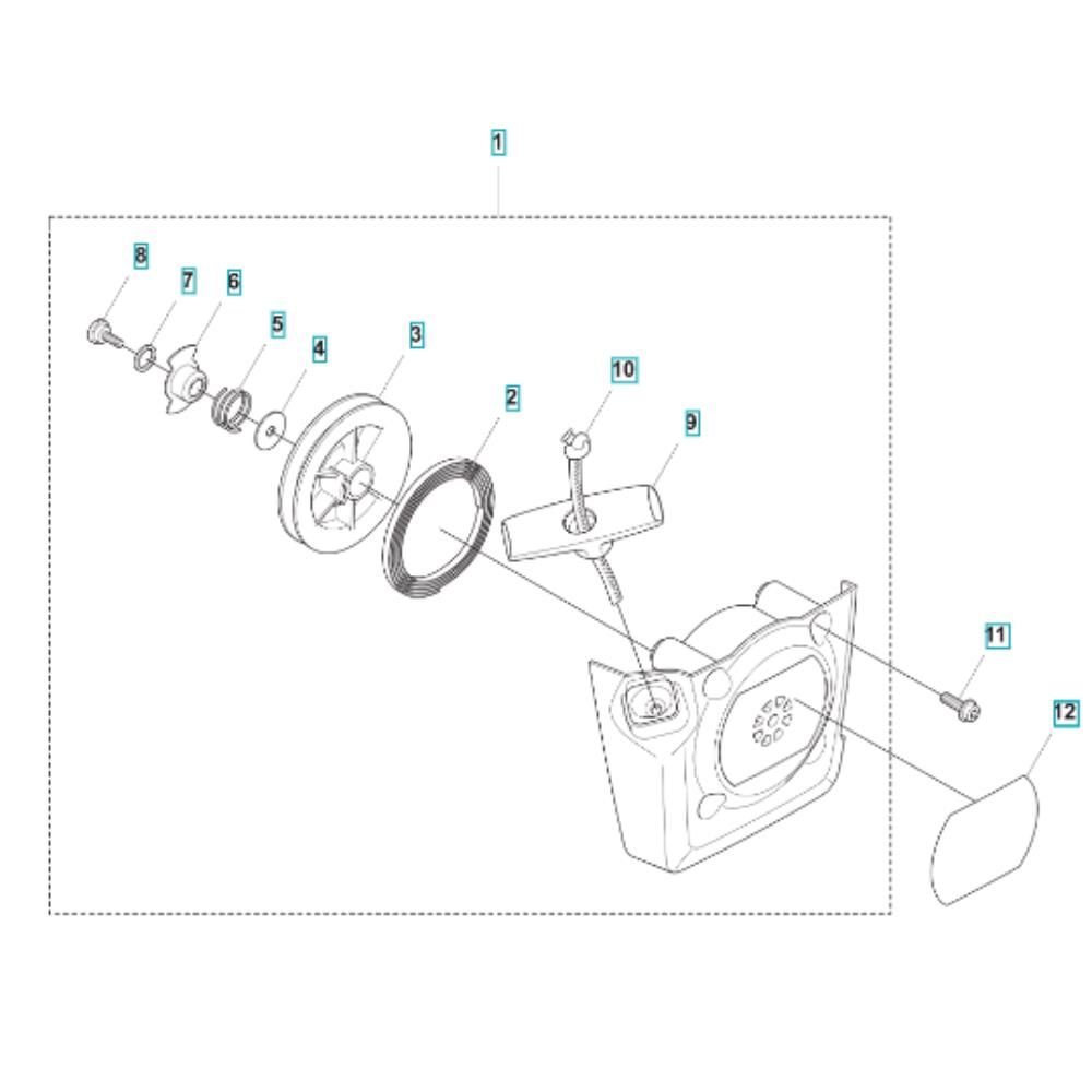 The Starter Assembly for the Husqvarna 580BFS Mark III Blower is designed to ensure reliable engine starts and efficient operation. This assembly includes key components such as the recoil spring, starter rope, and housing, all essential for maintaining the blower's performance. Genuine Husqvarna parts ensure compatibility and durability.