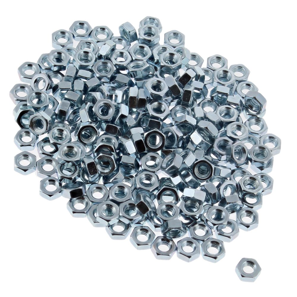 These nuts may also be referred to as M4 hex nuts, zinc-coated nuts, or simply steel nuts, making them a versatile choice for various fastening needs.
