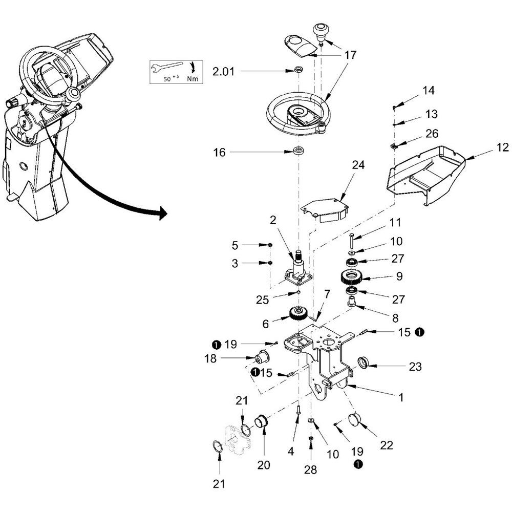 The Steering Assembly for the Hamm DV+ 70i (H225) Roller is essential for precise control and manoeuvrability. This assembly includes components such as the steering wheel, hydraulic lines, and control valves, ensuring smooth operation. Designed for durability, it supports the roller's performance in various construction environments.