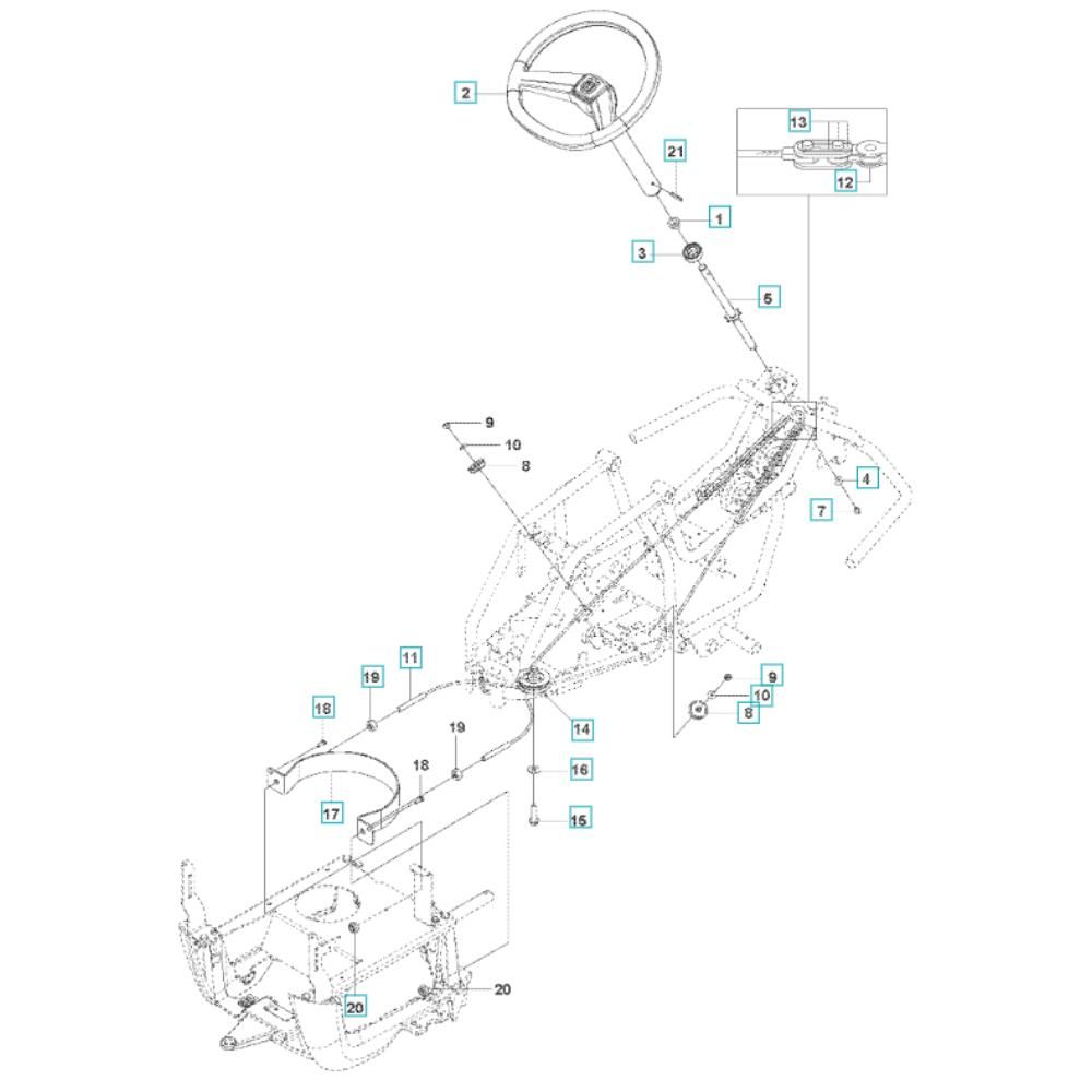 The Steering Assembly for the Husqvarna R 112iC Ride-On Mower ensures precise control and manoeuvrability. This essential component includes parts such as linkages, rods, and joints, designed to maintain optimal steering performance. Ideal for routine maintenance and repairs, it helps ensure smooth operation and longevity of your mower.