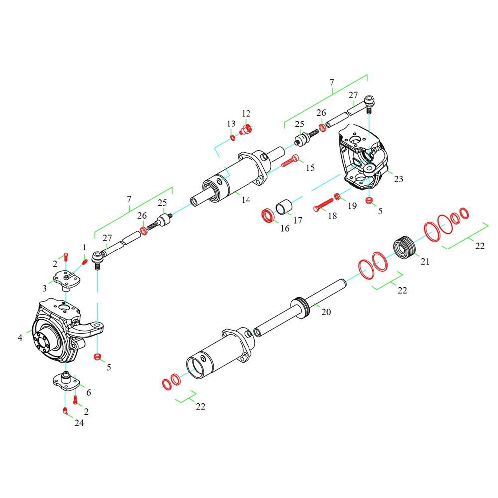 The Steering Cylinder Assembly for the Wacker TH408 Telehandler is crucial for precise manoeuvrability and control. This assembly includes components such as pistons, seals, and rods, ensuring smooth steering operations. Designed for durability and reliability, it supports the telehandler's performance in various working conditions.