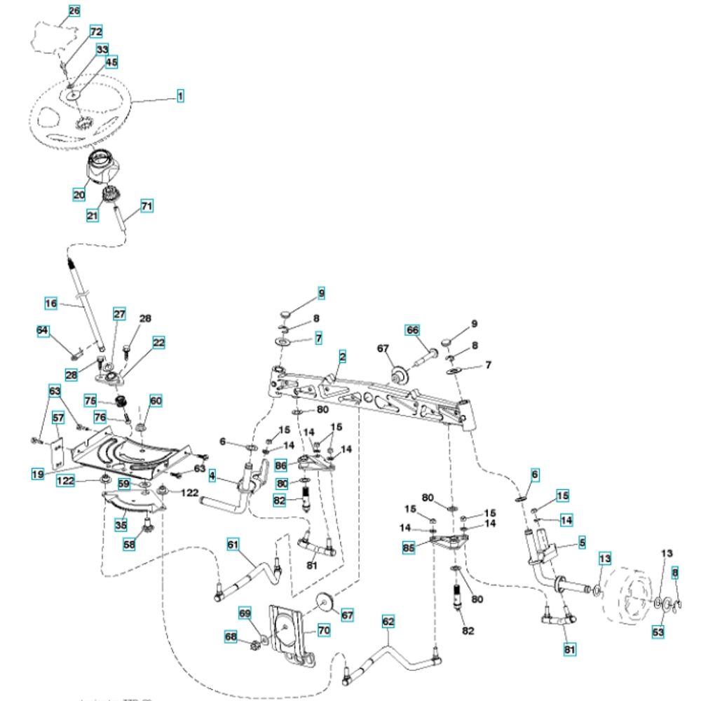 Steering components for Husqvarna CTH 194 Ride-On Mowers ensure precise control and manoeuvrability. This assembly includes essential parts like steering wheels, linkages, and rods, designed to maintain optimal performance and safety. Available in genuine and non-genuine options, these components are crucial for regular maintenance and repair, ensuring smooth operation of your mower.