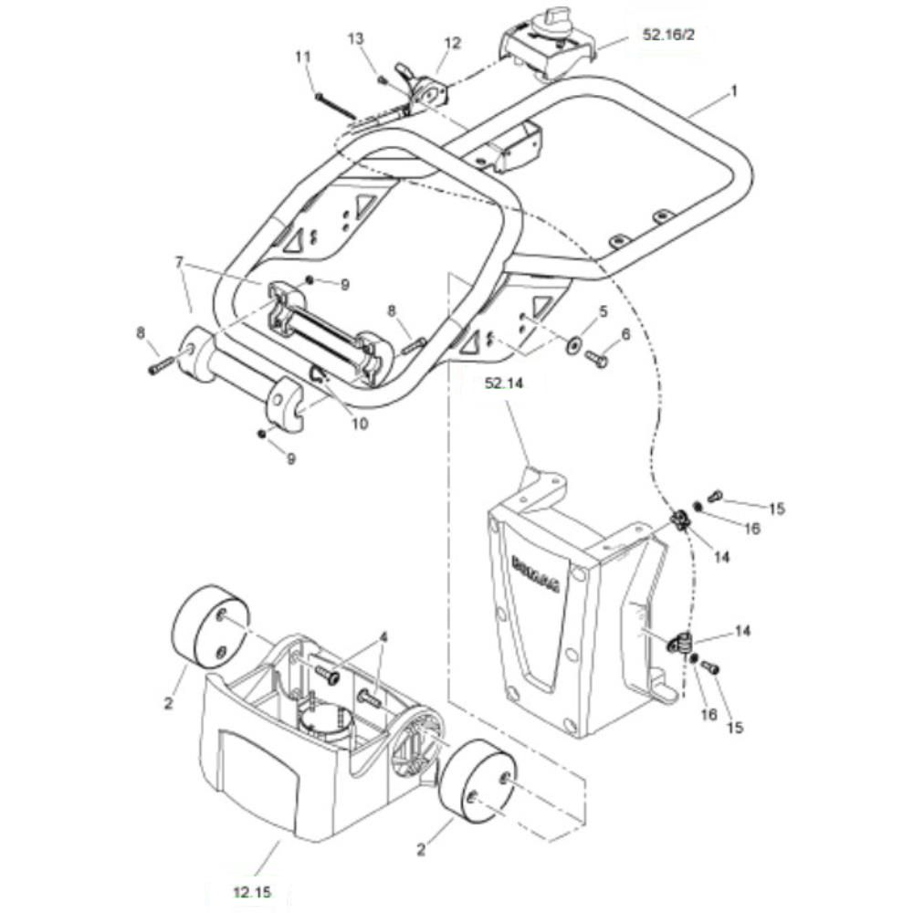 The Steering Handle Assembly for Bomag Rammers ensures precise control and handling during operation. Designed for specific serial numbers, it includes components such as grips, levers, and brackets. This assembly is essential for maintaining the functionality and safety of the equipment, providing reliable performance in demanding conditions.