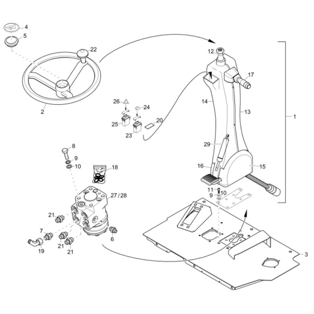 The Steering Unit Assembly for the Wacker 6503 Excavator is designed to ensure precise control and manoeuvrability. This assembly includes critical components such as steering columns, hydraulic lines, and control levers, which work together to provide smooth operation. Essential for maintaining the excavator's performance, it supports efficient handling in various construction tasks.