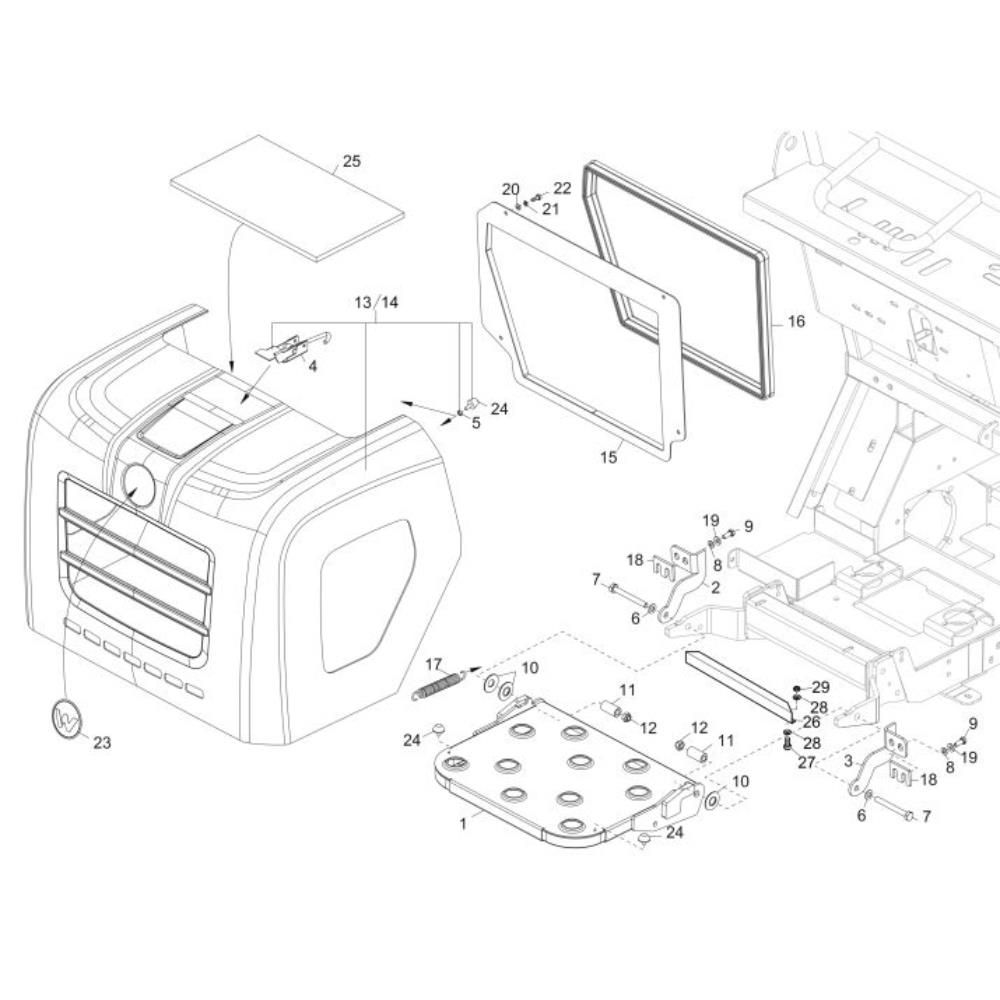 The Step Plate Assembly for the Wacker DT08 Pro Track Dumper is designed to provide safe and stable footing for operators. This assembly is crucial for maintaining the operational efficiency of the dumper, ensuring secure access and egress. It includes components such as brackets, fasteners, and the step plate itself, all engineered for durability and compatibility with the Wacker Neuson Track Dumper.
