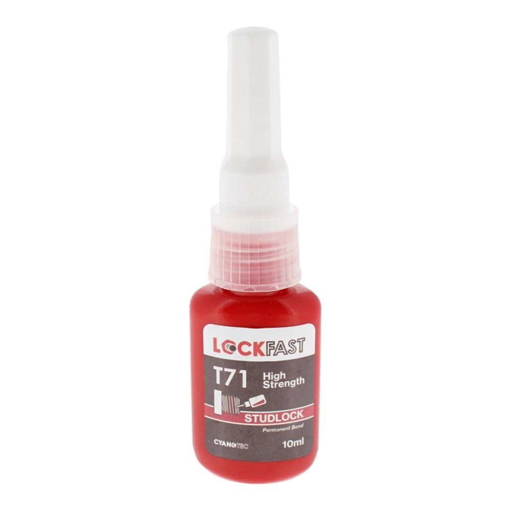 T71 (Replaces Loctite 271) is a genuine Lockfast high‐strength, red anaerobic threadlocking compound supplied in a 10 ml bottle. Designed for permanent locking of large threaded studs and bolts (typically M25 and above), it helps prevent loosening from vibration and shock in heavy‐duty assemblies. Its low viscosity (around 400-600 mPa·s/cP) allows it to wet threads thoroughly for a secure bond. T71 offers reliable performance across demanding environments with a service temperature range of -54°C to 150°C and torque values suited to robust fixings. It is UV‐positive for inspection under UV light. Ideal for construction and garden machinery maintenance and repair, it provides a tidy, controlled application that supports long‐term equipment integrity. Genuine Part, branded Lockfast.