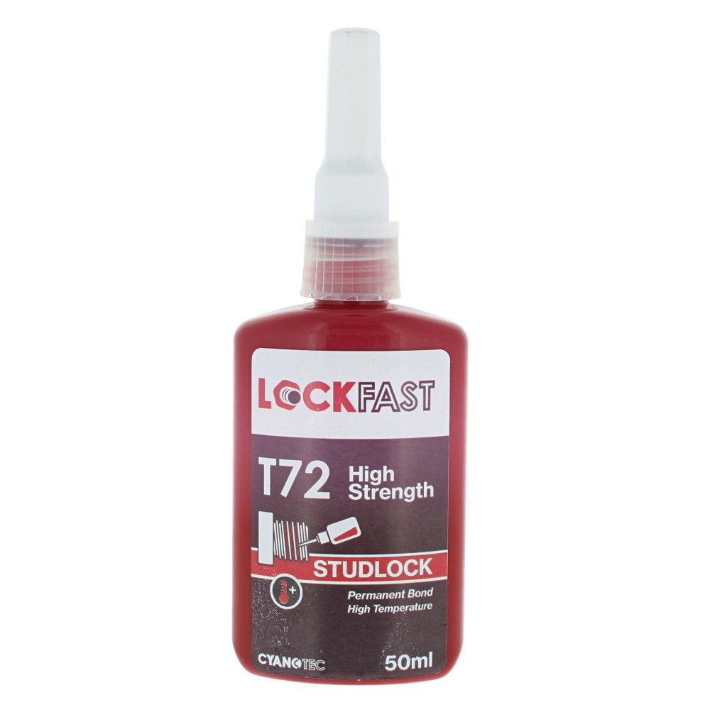 The T72 (Replaces Loctite 272) Retaining Compound is a premium, red, high-temperature, high-strength threadlocker designed to permanently lock threaded fasteners and prevent loosening due to vibrations and thermal expansion. This 50ml Genuine Lockfast Product, with a medium viscosity of 4000-15000 cP/mPa, is thixotropic, ensuring it stays where it's applied without dripping. Ideal for a vast array of applications, from automotive engines to heavy industrial machinery, the T72 compound withstands extreme temperatures ranging from -54°C to 230°C, ensuring reliable performance under harsh conditions.