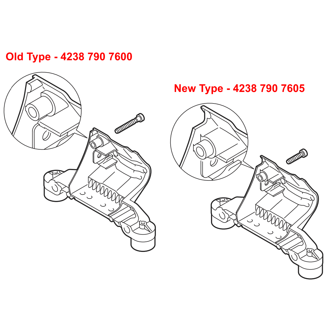 This Support Assembly is a genuine Stihl replacement for older Stihl TS 410 and TS 420 disc cutters. Supplied under OEM No. 4238 790 7600, it restores the structural support and anti‐vibration performance around the cutting unit. The assembly consists of a robust metal support bracket, a rubber buffer to control vibration, and a steel fixing screw for secure mounting. It maintains correct alignment of the cutting components, helping the machine cut true and operate safely under load. Ideal for replacing worn or cracked supports and perished buffers, it brings the machine back to factory fit and feel. Includes Support (4238 791 7601), Buffer (4205 790 9300), and Screw (0000 951 1100). Genuine Stihl part for reliable compatibility and long service life.
