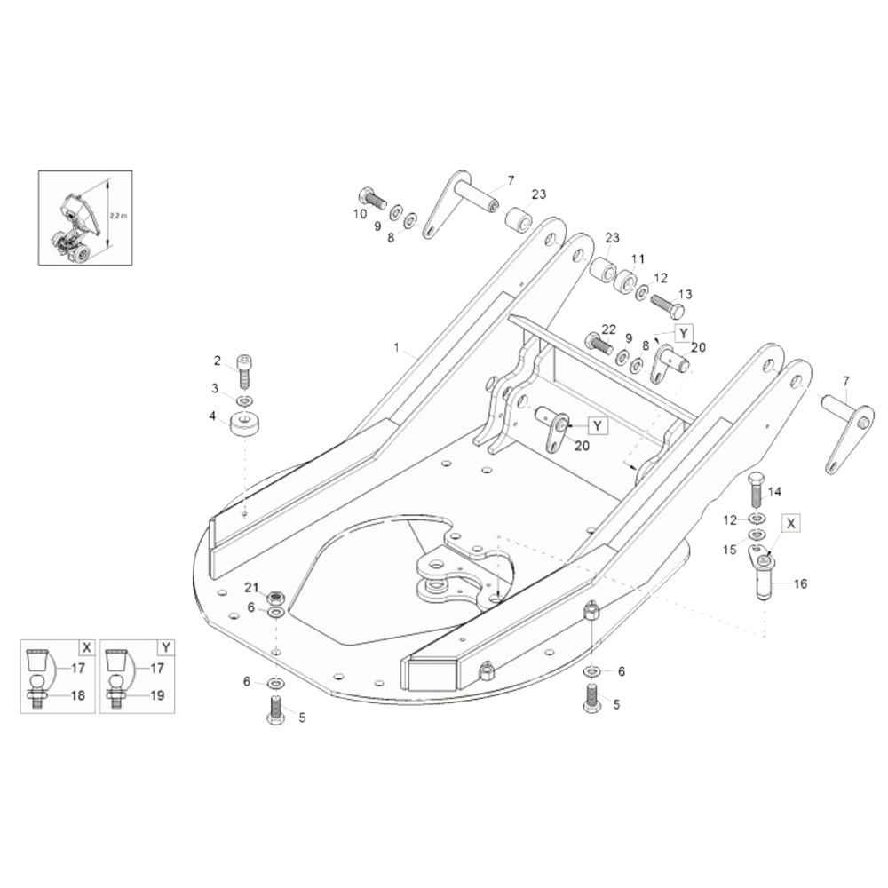 The Swing Bracket Assembly for the Wacker 3001AE Dumper is designed to ensure optimal performance and durability. This assembly plays a crucial role in the dumper's operation, providing stability and support. It includes components such as brackets, pins, and bushings, all essential for maintaining the structural integrity of the machine. Genuine Wacker Neuson parts ensure compatibility and reliability.
