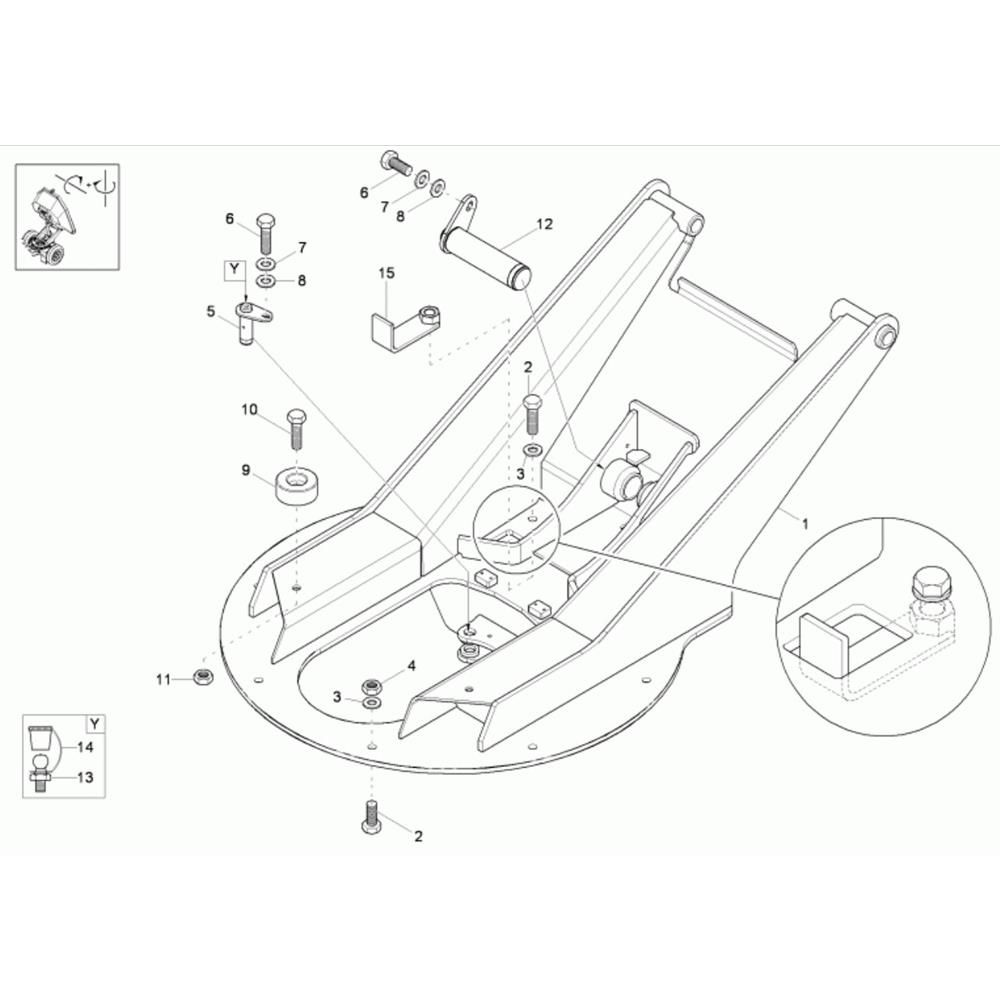 The Swing Bracket Assembly for the Wacker 5001 Dumper is designed to ensure smooth operation and stability. This assembly includes components such as brackets, pins, and bushings, which are essential for maintaining the dumper's performance. Genuine Wacker Neuson parts ensure compatibility and durability, helping to extend the life of your equipment.