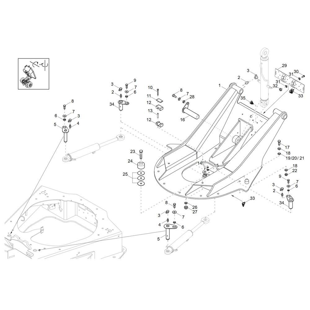 The Swing Bracket Assembly for the Wacker DV60-2 Dumper is designed to ensure optimal performance and durability. This assembly includes key components that facilitate the smooth operation of the dumper's swing mechanism. Genuine Wacker Neuson parts ensure compatibility and reliability, maintaining the machine's efficiency and longevity.