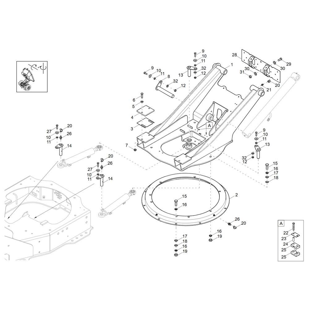 The Swing Bracket Assembly for the Wacker DW20-2 Dumper is crucial for maintaining the stability and functionality of the machine. This assembly includes components such as brackets, pins, and bushings, which ensure smooth operation and precise movement. Designed for durability, these parts help in the efficient handling of loads, contributing to the overall performance of the dumper.