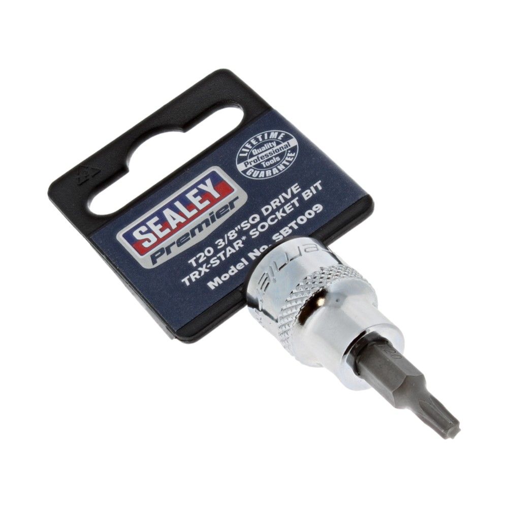 The Sealey T20 3/8"Sq Drive TRX-Star* Socket Bit is a genuine Sealey hand tool designed for accurate fastening and removal of T20 star-drive screws on construction and garden machinery. Built with a Chrome Vanadium steel socket and a tough S2 steel bit, it delivers strength and durability for regular workshop use. The 3/8 inch (9.5 mm) square drive fits common ratchets, torque wrenches, and extension bars, while the compact overall length of 48 mm (1.89 inches) helps in tighter spaces. A mirror chrome finish resists corrosion and cleans easily, and the knurled ring provides extra grip when your hands are oily. Suitable for tradespeople, maintenance teams, and DIY users, this bit socket supports reliable, repeatable results in everyday repair and servicing tasks.
