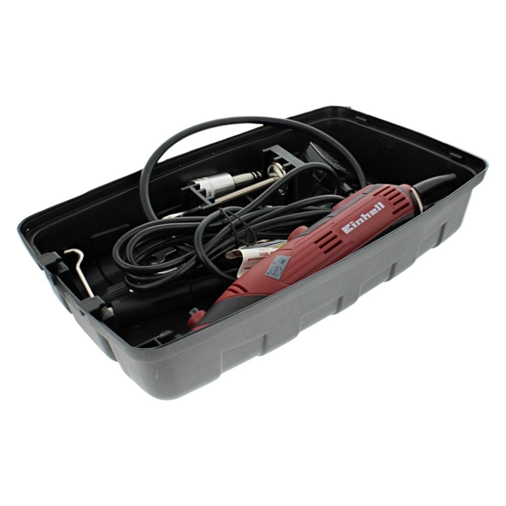 The Einhell TC-MG 135 E Grinding & Engraving Tool Kit is a versatile and compact machine designed for a wide range of applications, including drilling, cutting, grinding, and brushing. With a robust 135W motor and operating at 240V, this tool is ideal for both professional tradespeople and DIY enthusiasts. Its ergonomic design features a soft grip for comfortable handling, and the spindle lock allows for quick and easy attachment changes. The kit includes a comprehensive 189-piece accessory set, making it suitable for various tasks. This tool is perfect for those looking to enhance their precision work in construction and garden machinery maintenance.