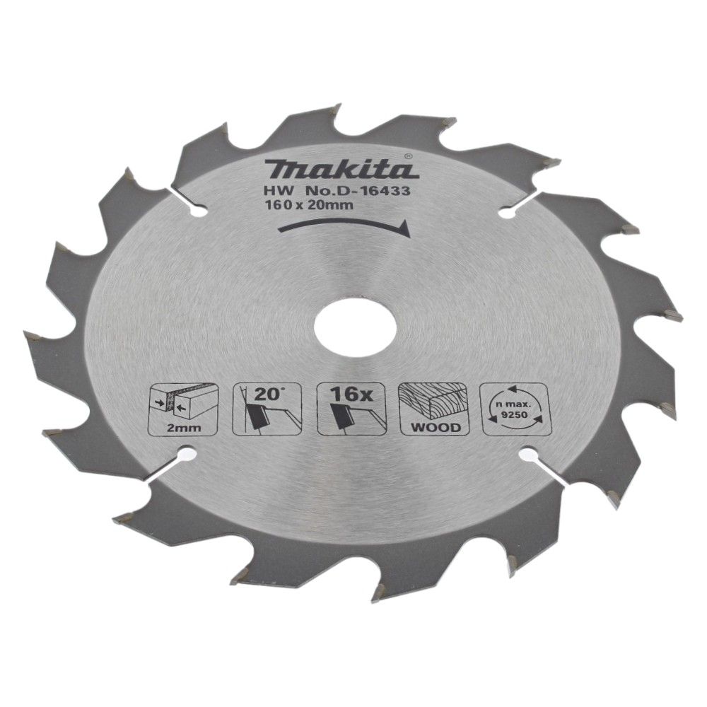 The Circular Saw Blade, Standard T.C.T, 160mm x 20mm, 16 Teeth is a genuine Makita part designed for precision wood cutting. Crafted with tungsten carbide tips, this blade ensures durability and sharpness, making it ideal for both professional tradespeople and DIY enthusiasts. With a blade diameter of 160mm (approximately 6.3 inches) and a bore size of 20mm, it fits a range of circular saws, providing clean and accurate cuts. The OEM No. D-16433 guarantees compatibility and quality, ensuring your saw operates at its best.