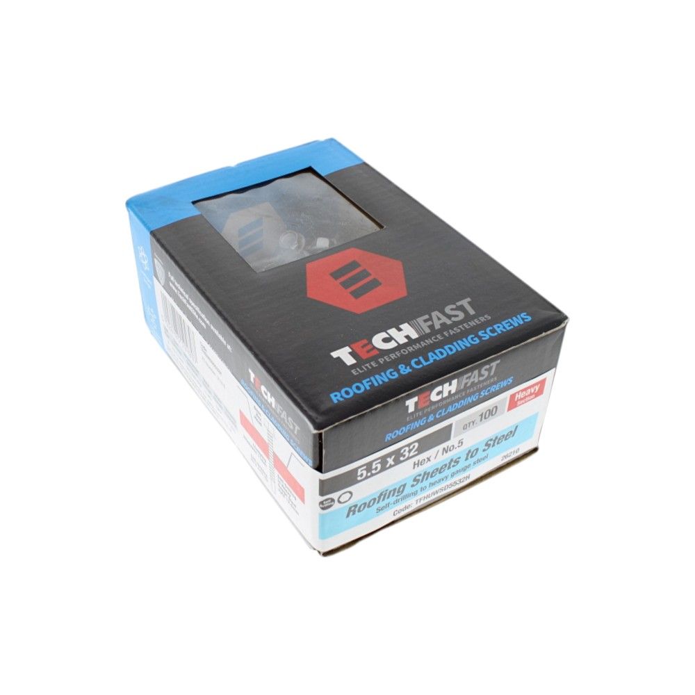 The TechFast Roofing Sheet to Steel Hex Screw No.5 Tip 5.5 x 32mm is a high-quality fastening solution designed for securing metal roofing panels to steel frame buildings. Manufactured by ForgeFix, these screws are made from durable materials and feature a corrosion-resistant Elementech coating, ensuring longevity and reliability. With a No.5 drill tip, these screws are capable of self-drilling into heavy gauge steel up to 12.5mm thick. Ideal for tradespeople and DIY enthusiasts, these screws provide a secure and efficient method for roofing installations.