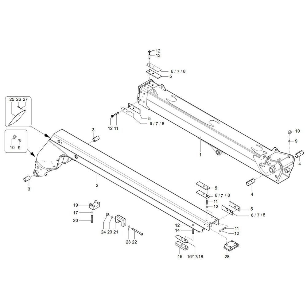 The Telescopic Boom Assembly for the Wacker TH730 (415-04) Telehandler is designed to enhance the machine's lifting capabilities. This assembly includes key components such as hydraulic cylinders, extension arms, and mounting brackets, ensuring efficient operation and stability. Genuine Wacker Neuson parts guarantee compatibility and reliability, supporting various construction and material handling tasks.