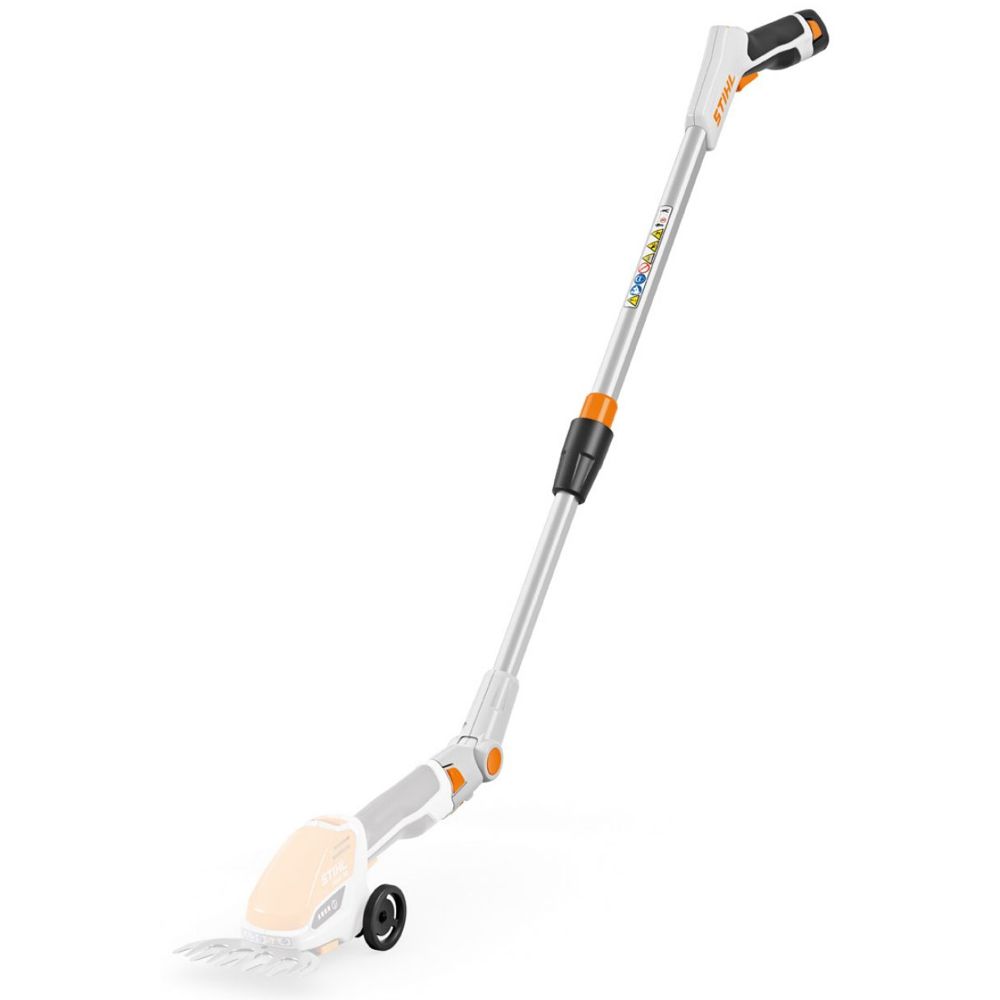 The Telescopic Shaft for Stihl HSA 26 Garden Shears is a genuine spare part designed to enhance the functionality of your cordless shrub shears. This high-quality telescopic shaft allows users to operate the HSA 26 shears in an upright position, making it ideal for edging lawns with ease. Constructed with durability in mind, it features smooth-running wheels for effortless manoeuvrability. Simply attach the shaft to the battery slot of the HSA 26, add the wheels, and insert the battery into the shaft's end to begin trimming grass comfortably while standing.