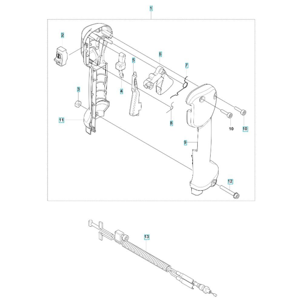 The Throttle Assembly for the Husqvarna 143RS Brushcutter is designed to ensure smooth and precise control of engine speed. This assembly includes components such as cables, levers, and springs, which are crucial for maintaining optimal performance and safety. Genuine Husqvarna parts ensure compatibility and reliability, making them ideal for routine maintenance and repairs.