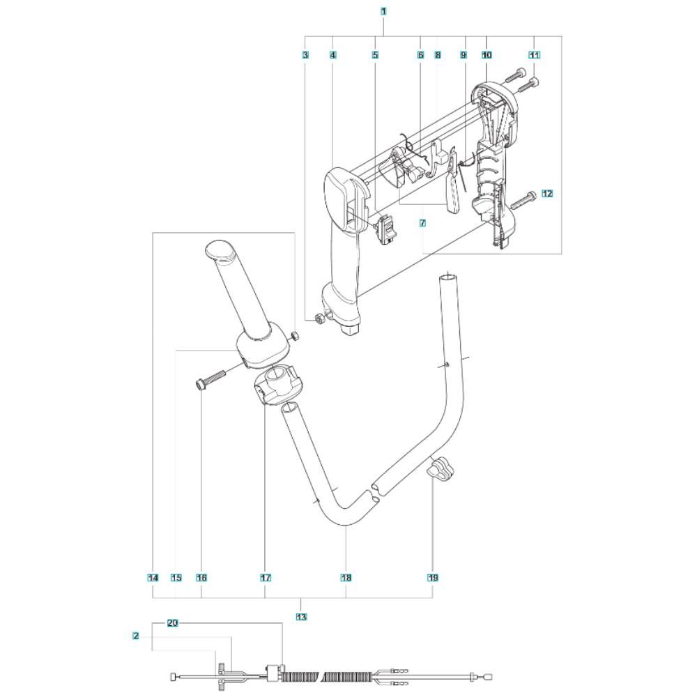 The Throttle Assembly for the Husqvarna 525RX Mark II Brushcutter is essential for controlling engine speed and ensuring efficient operation. This assembly includes components such as cables, levers, and springs, designed to provide precise throttle response and durability. Genuine Husqvarna parts ensure compatibility and reliability for your brushcutter.